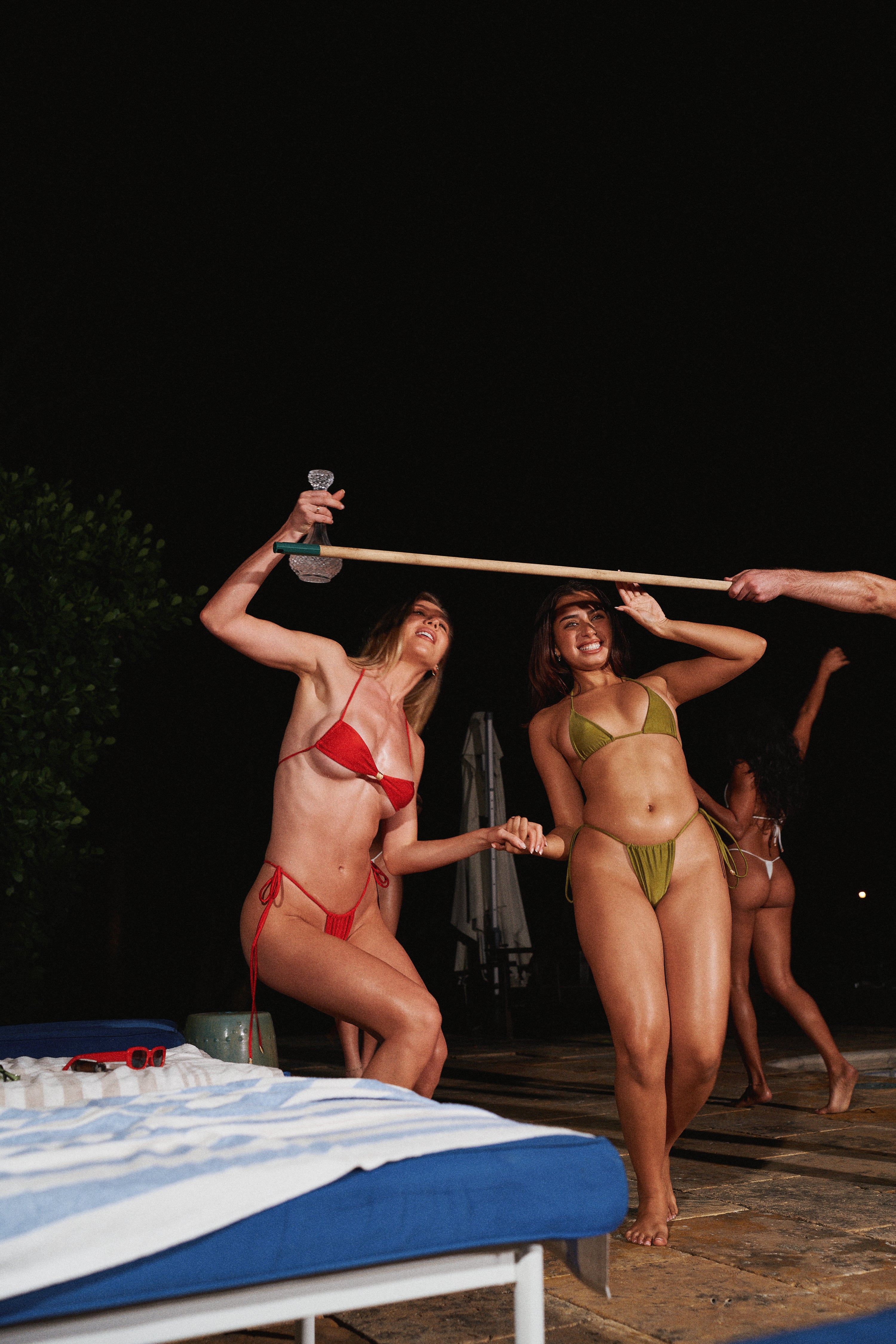 Featuring a soft, stretchy, luxe fabric that is comfortable AND sexy. Minimal coverage, bandeau top with string ties. Can be worn with neck tie, or a double strap back only tie.